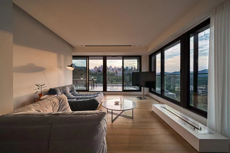 材料規格:3.0,框扇齊平,中空鋼化8+25A+8,進口五金,抗風壓9級,隱形排水。